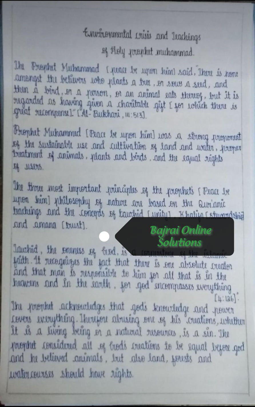 The three most important principles of the prophet’s Peace be upon him philosophy of nature are based on the Quranic Teachings and the concepts of Tawhid (unity), Khalifa(stewardship) and Amana (Trust).