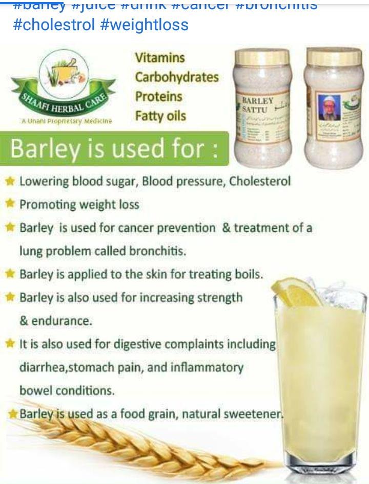 - Barley is used for cancer prevention and treatment of lungs problem called bronchitis