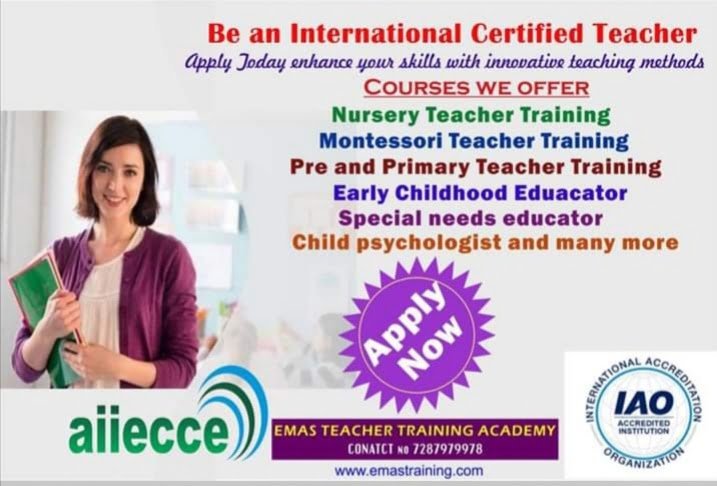 EMAS Teacher Training Centre in collaboration with All India Institute of Early Childhood care and Education is a Step towards a modern education, providing various Diploma courses for teachers where learning made easy and fun. Our Courses are both International and nationally recognized.
