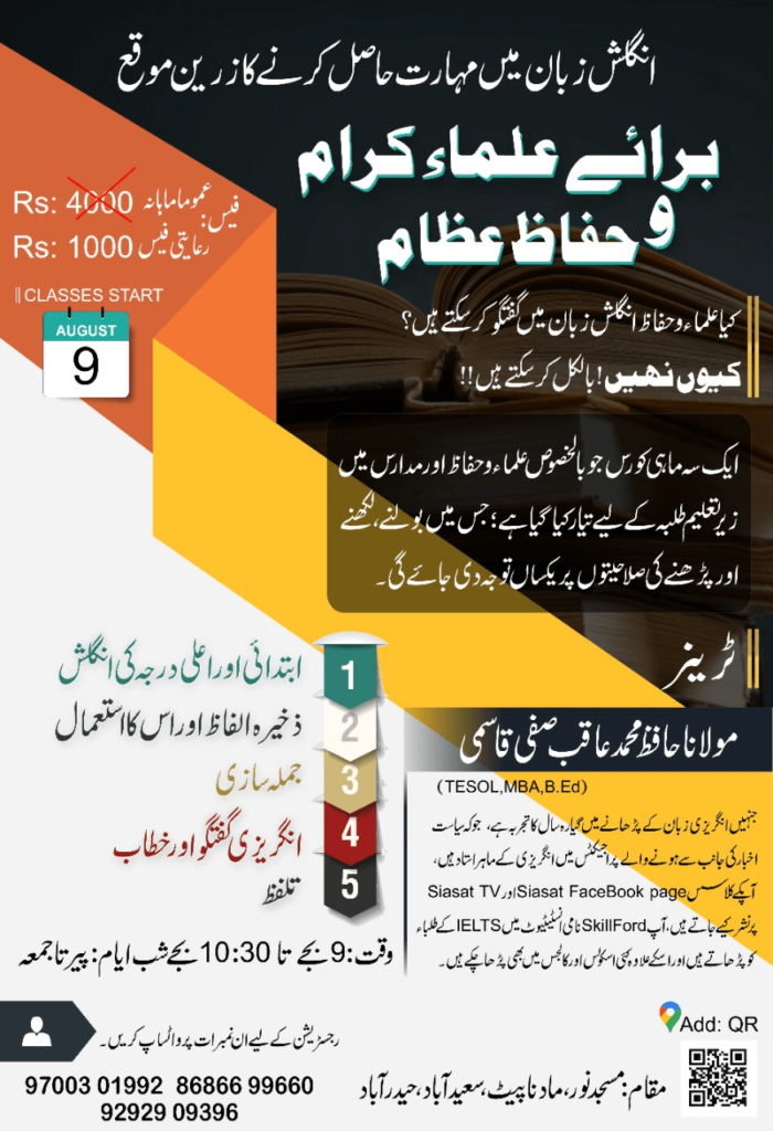 English Proficiency Classes in Hyderabad for Ulama and Huffaz by Hafiz Aqib Safi Qasmi