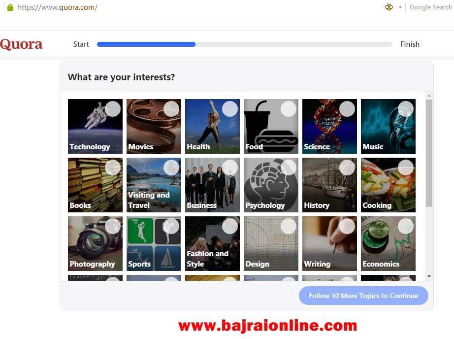 Then You have to Select any 10 areas of your interest. See Below in the image