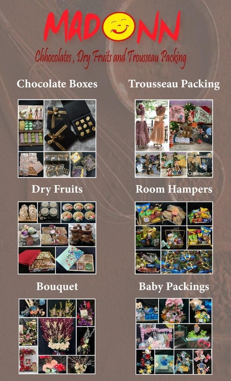 Madonn Chocolates is a Chocolates, Dry Fruits and Trousseau Packing Shop in Adarsh Nagar, Hyderabad.