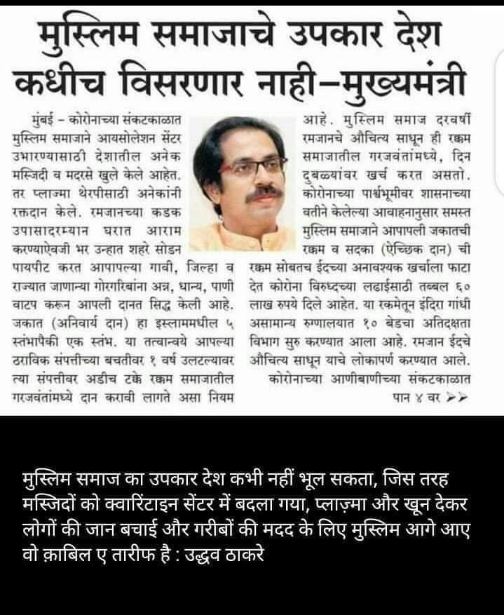 Mulk ke Musalmano ki khidmat faramaush nahi karsakte: Mumbai C.M Udhhav Tahkre by mdirfanahmed761 | Apr 27, 2021 | Uncategorized | 0 commentsSubmit a CommentYou must be logged in to post a comment.