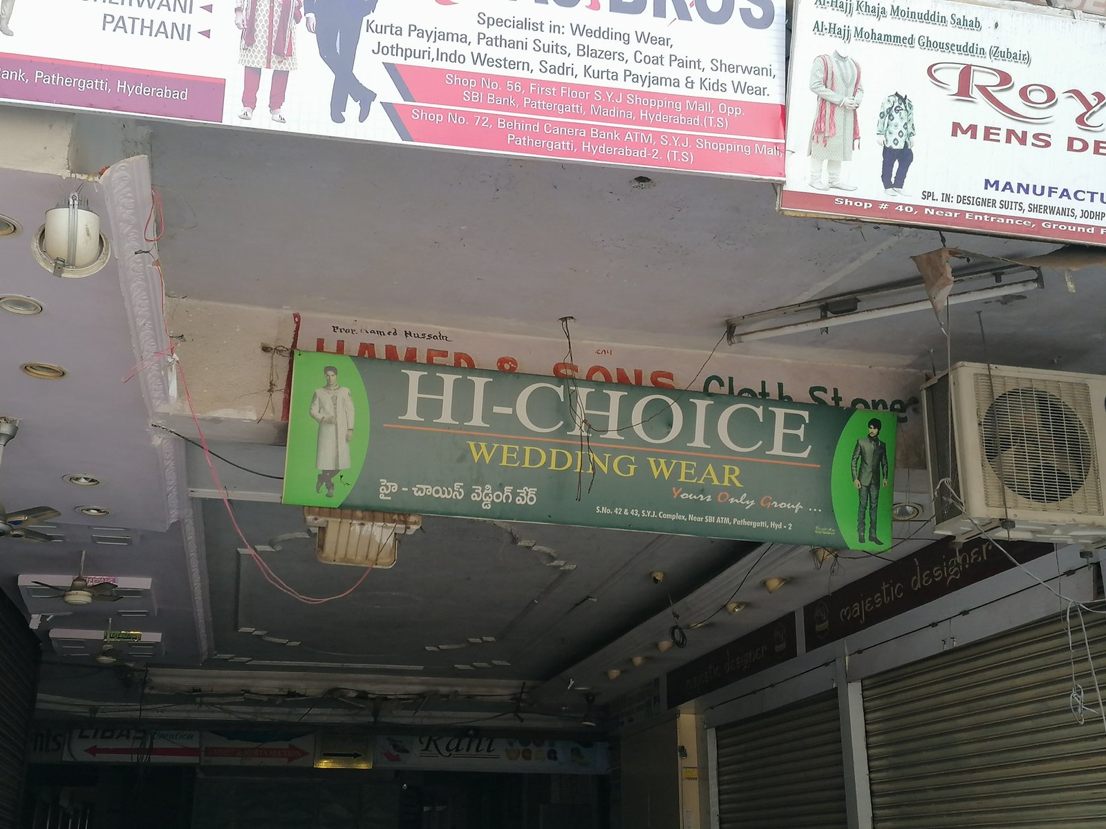 New Hi Choice Wedding Wear is located in SYJ Complex beside SBI ATM Pathergatti